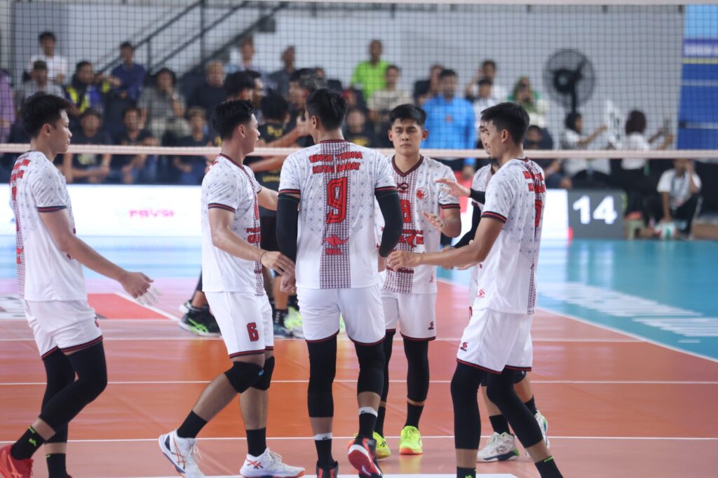 JakCityNews (Tangerang) – Sudah unggul dua set lebih dulu tim putra Singoyudha Kutai Barat dipaksa bermain lima set oleh Sukun Badak dengan skor 3-2 (26-24, 25-19, 25-27, 23-25, 15-9) pada laga kedua Livoli Divisi Utama 2025 Putaran Reguler Pertama hari pembuka putra, di GOR Nambo, Tangerang, Selasa (9/9/2025).